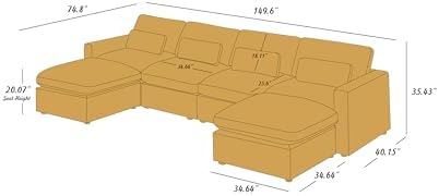 I ordered this sectional on March 13th and surprisingly it arrived only two days later. The original estimated delivery date was suppose to be March 20th which is already pretty fast. The 6 packages were delivered to my driveway and I had a friend help me bring them inside. I have to say, although the boxes are pretty large, they are not excessively heavy and fairly easy to lift on your own. The unboxing and assembly process could not have been simpler. An absolute breeze in comparison to some IKEA dressers that I’ve assembled in the past. The accompanying instructional booklet is very detailed and easy to follow with tons of great diagrams; you won’t necessarily need it though as the assembly process felt quite intuitive in my opinion. Not having to use a screwdriver to put it all together was a strangely liberating feeling as well!As a person that is 6’3”, this sectional is perfect for stretching out and not worrying about my feet reaching the other end of the couch. It’s comfortable, oversized, and reasonably priced. The fabric is soft and feels like a durable, quality material that I think we’d all expect at this price point. If you’re going back and forth between this product and similar ones on Amazon, IKEA, Wayfair, etc… let me save you the endless hours comparing criteria like seat depth, material quality, shipping cost… JUST PICK THIS ONE.