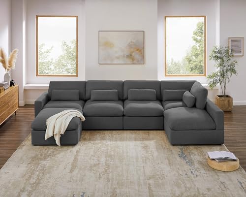 149" Oversized Modular Sectional Sofa, Extra Large U Shaped Couch with Reversible Chaise, 6 Seater Living Room Sofa Couch, Dark Grey
