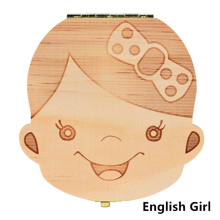 1PC Spanish English Baby Wood Tooth Box Organizer Milk Teeth Storage Collect Teeth Umbilical Cord Save Gifts for Kids Girls