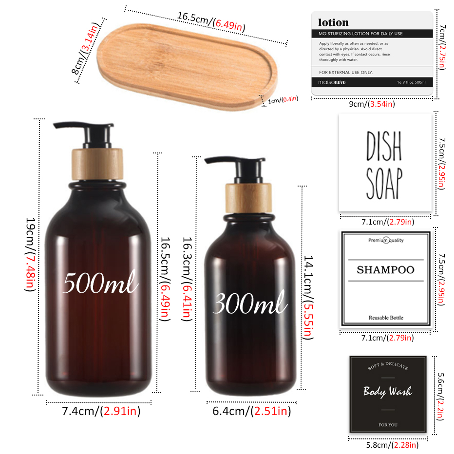 300/500ml Soap Dispenser Bottle Bamboo Pump Bathroom Portable Soap Bottle Shampoo Shower Gel Refillable Bottle Waterproof Label