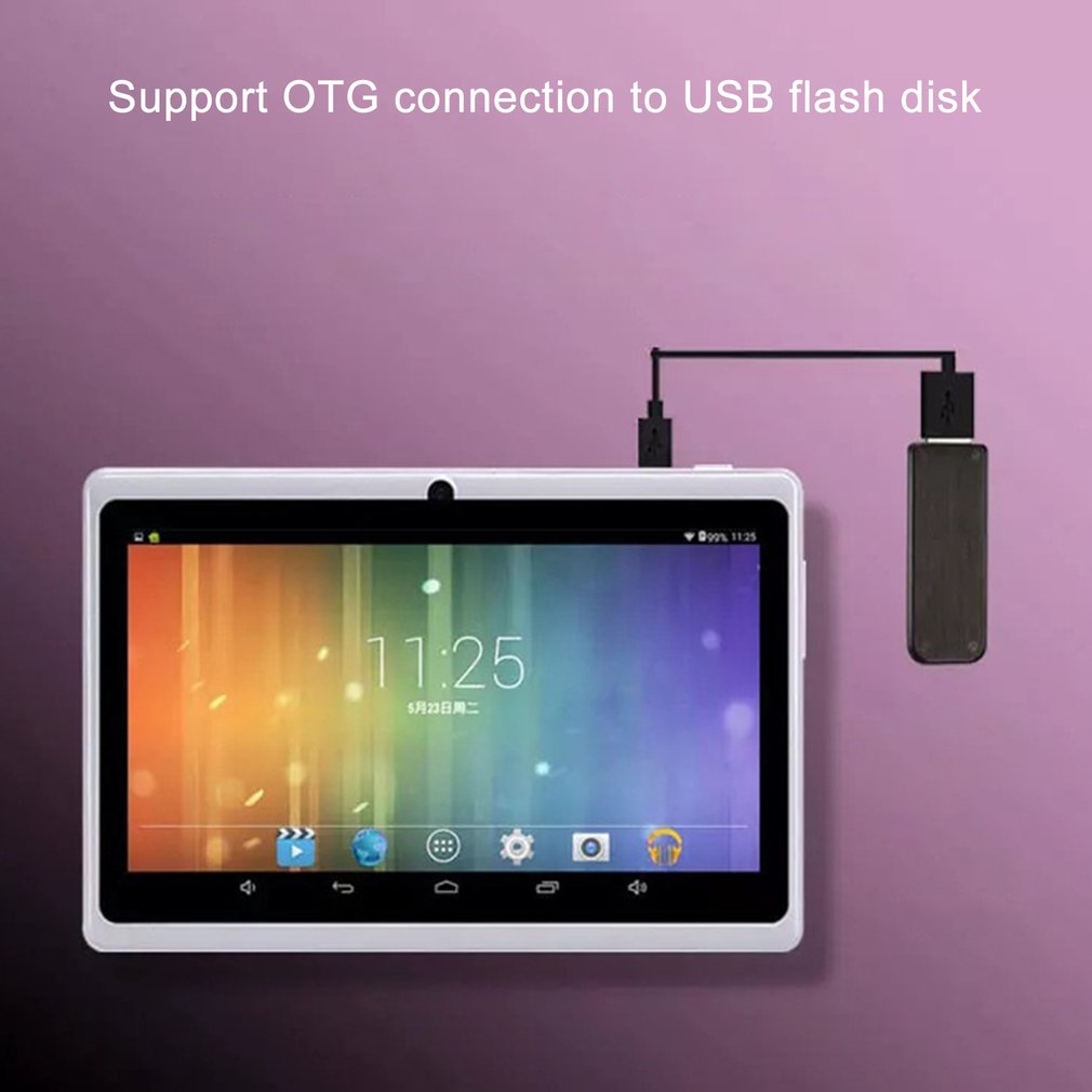 4. A33 Quad Core, Mali-400 MP GPU: This Tablet PC has a powerful processor of new A33, wiquad-core Cortex. This CPUS peak speed is up to 1.5GHZ and about 4 times than others.