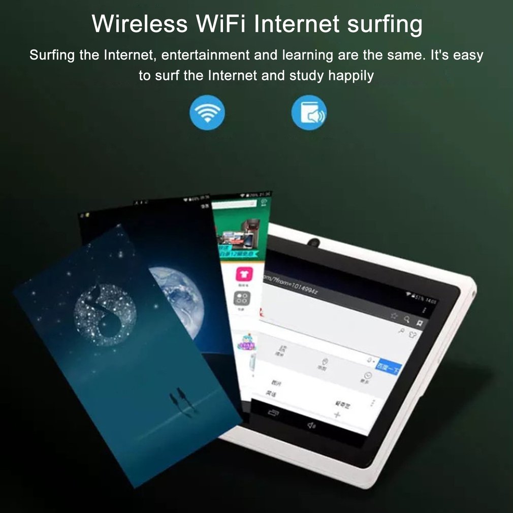7 Inch Kids Tablet WIFI Wireless Tablet Up to 1.5GHZ A33 Quad Core Mali-400 MP GPU Capacitive Touch Screen Dual Camera