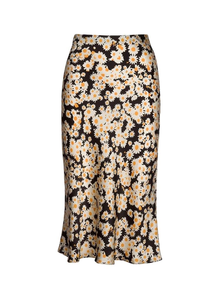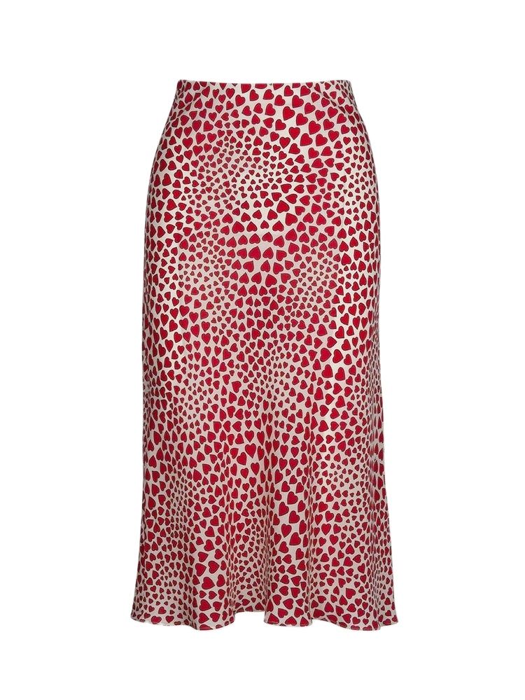BBWM WOMAN French Style Small daisy Heart Leopard Print Silk Trumpet Skirts Vintage Chic Women Summer Casual Slim Waist Skirt