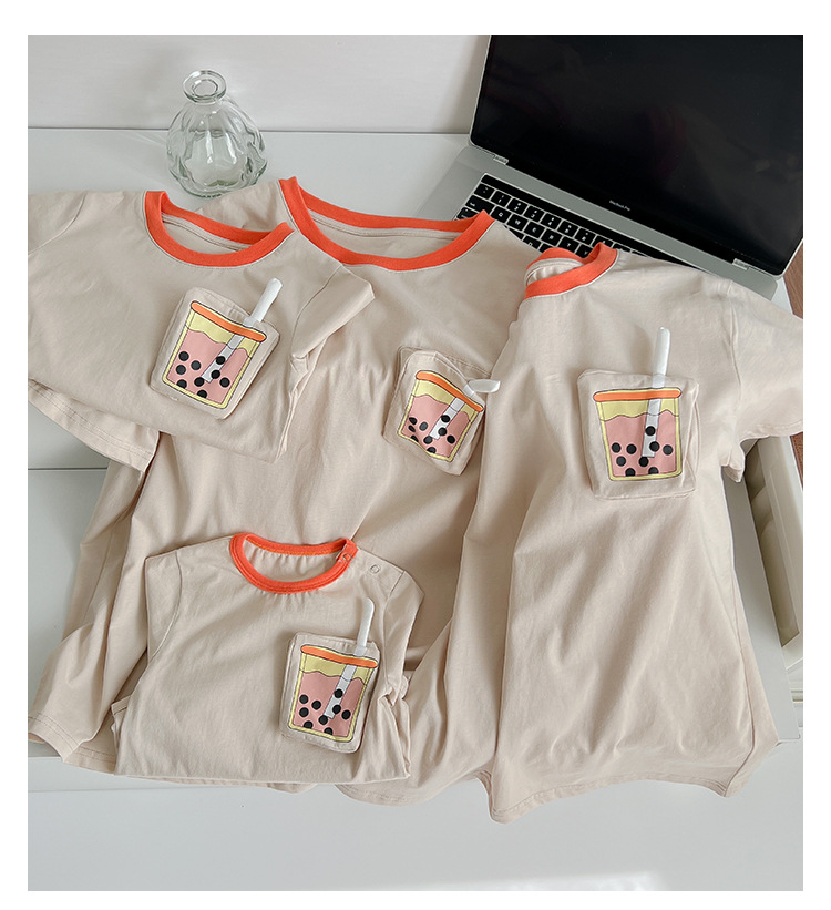 Baby kids Parent-child Summer Clothes Family matches Mother Dad Children's Clothing Striped Smiley Family Look