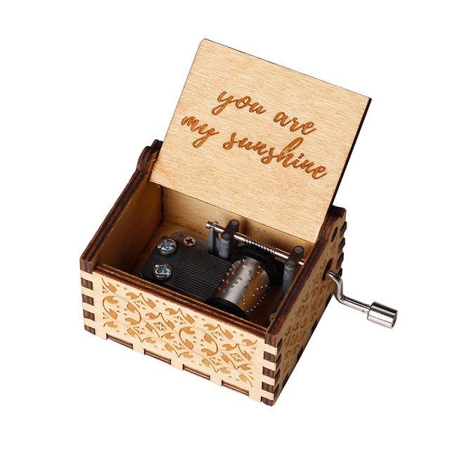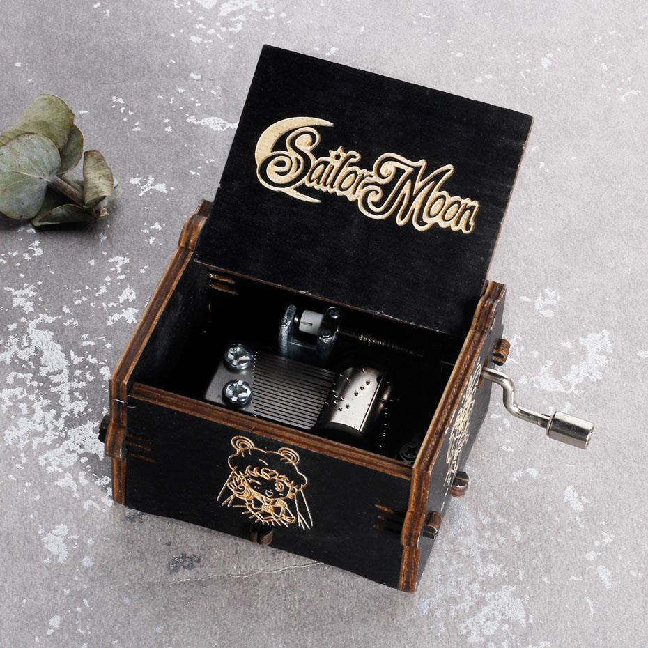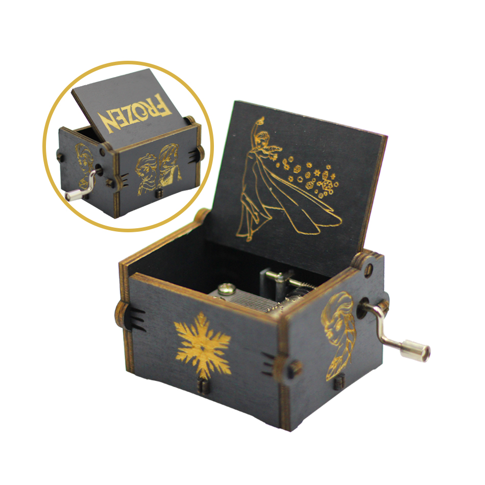 Black Castle In The Sky Queen Music Box Wooden Music Box Birthday Gift Antique Carved Wooden Handle