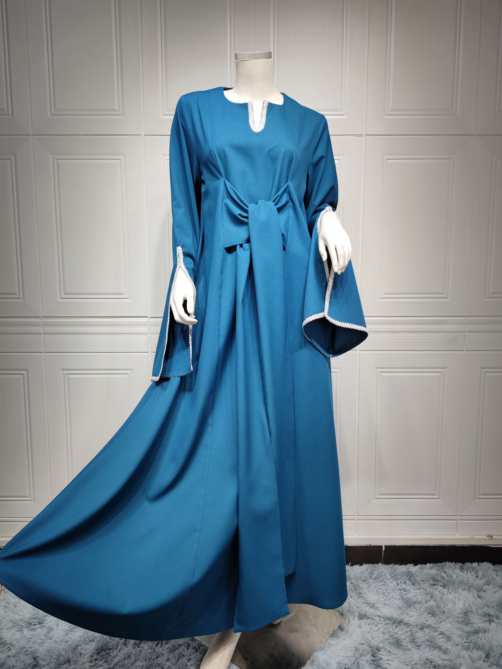 Blue Maxi Dubai Evening Party Formal Dress Ramadan Abayas For Women Muslim Islam Kaftan Jalabiya Clothing Long Sleeves