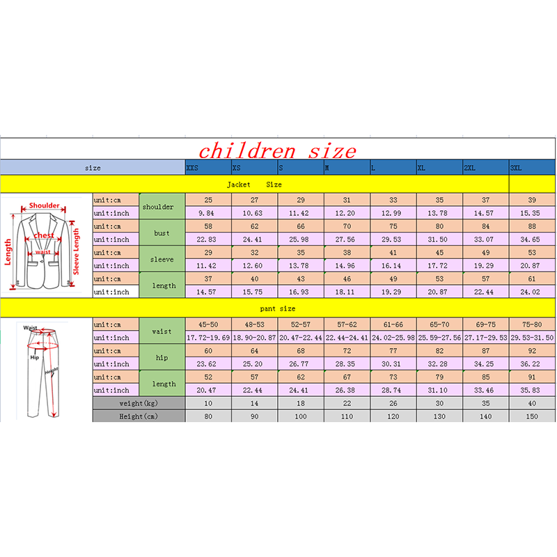 2. All sutis can custom made in adulet and boy size, we can custom made as your requests, so please send your requests to us if you want custom made.