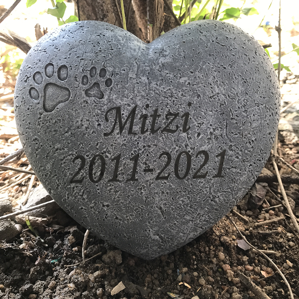 �� Makes a touching pet memorial gift - Hand-carved and painted pet memorial stone, support the customization of name and dates, make this unique last gift for your pet. �� Perfect design: this pet memorial stone has paw prints on the 3-D Heart shaped stone, �� Outdoors and Indoors: Cast in environmental friendly resin to resemble the look of real stone,weatherproof and waterproof,resistant to sunlight also. Put this unique pet garden stone alongside a walkway, under your favorite tree, near a flower bed, or on a porch or patio.Keep you and your pet together in spirit forever. �� Measurement: Size 6.5 x 6 inches and Weight 0.8 pounds �� Servive: Customer service always our first important thing to do, when you receive it, if there any problems, pleast contact with us by mail first time , we will try our best to provide a best solution .