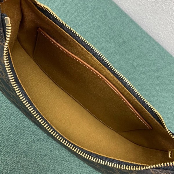 Celine’s technical and artistic expertise is expressed to the fullest extent in the Ava bag. Designed in Triomphe canvas, the signature of the French fashion house, it offers golden finishes coupled with calfskin leather. Its elegant crescent moon design can be carried in the hand or on the shoulder by means of an adjustable shoulder strap. This accessory, full of character, impresses with its modernity, combined with a strong couture accent.
