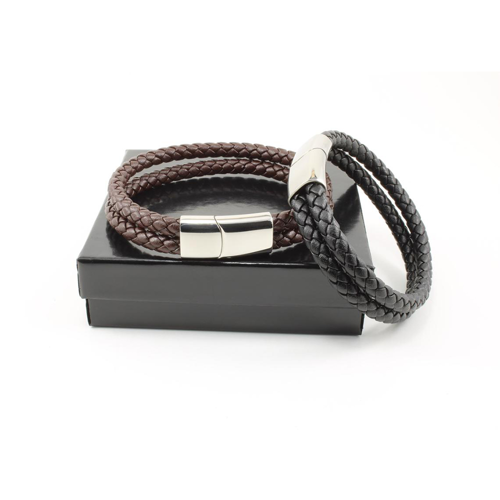 This bracelet is a deluxe, great quality product and is comfy to wear. Perfect for a modern, trendy man, it is stylish and trendy for every occasion, and can be worn every day. This design is hand braided using genuine leather great quality and is finished with a stainless steel secure magnetic sliding clasp. The bracelet feels and looks very nice on.