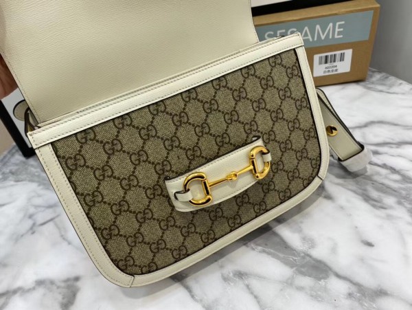 Introduced for Cruise 2020, the Gucci 1955 Horsebit bag is recreated from an archival design. With the same lines and forms first introduced over six decades ago, the accessory unifies the original details with a modern spirit, highlighting the Horsebit. Part of Gucci’s genetic code, the double ring and bar design has been established as one of the most distinctive elements among the House symbols borrowed from the equestrian world. Presented on a small flap shoulder bag, the hardware is paired with the House’s monogram fabric and completed with a special mechanism that adjusts the length of the shoulder strap so it can be carried on one shoulder or cross body.