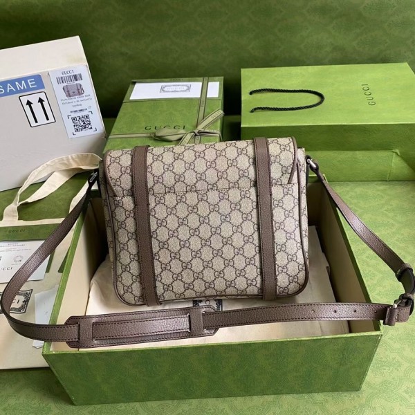 Gucci Beige GG Messenger Bag with Double Belts