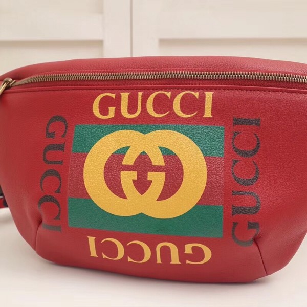Inspired by vintage prints from the eighties, the Gucci logo is brought to the forefront. The retro-style motif is presented on the front of a belt bag in supple grained leather.