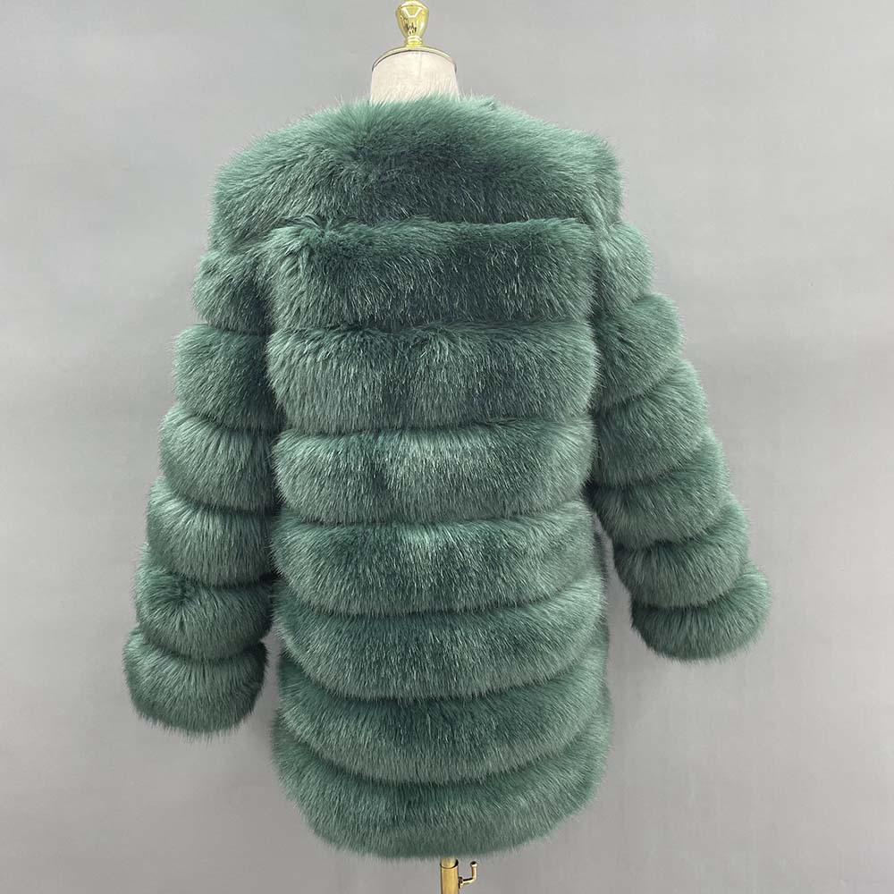 Janefur Long Fake Fur Coat Women Full Sleeves 60cm Artifical Fox Fur WholeWarm Winter Female Faux Fur Jackets
