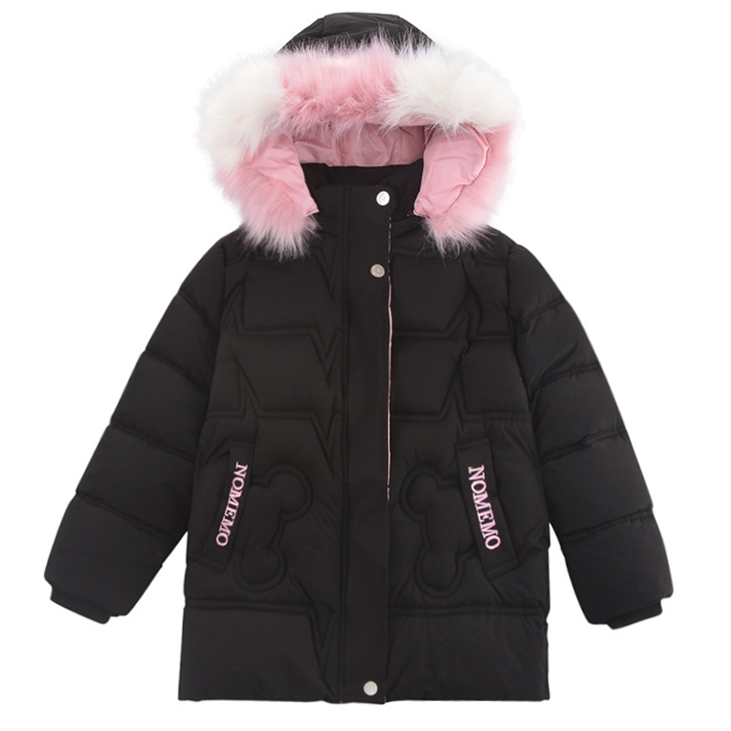 LANBENA Children's winter down jacket able children's medium and long printed wool collar hooded cotton