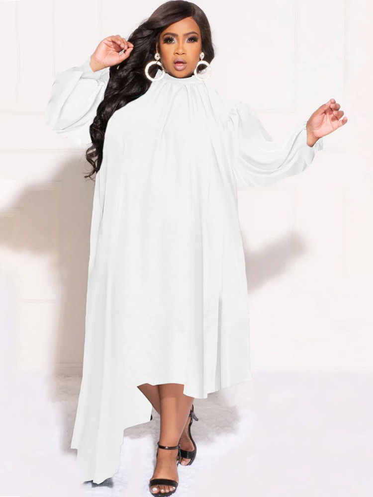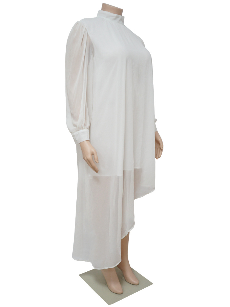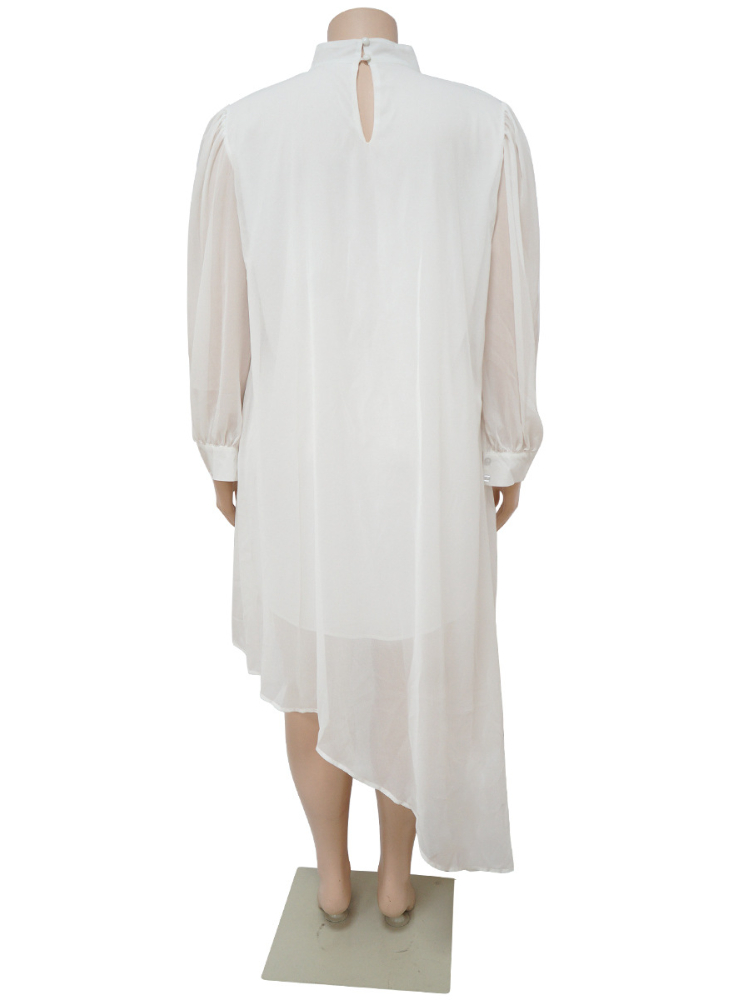 Long Sleeve Chiffon Dresses Plus Size 3XL 4XL Women Loose Oversized White Irregular Office Work Casual Outfits for Ladies