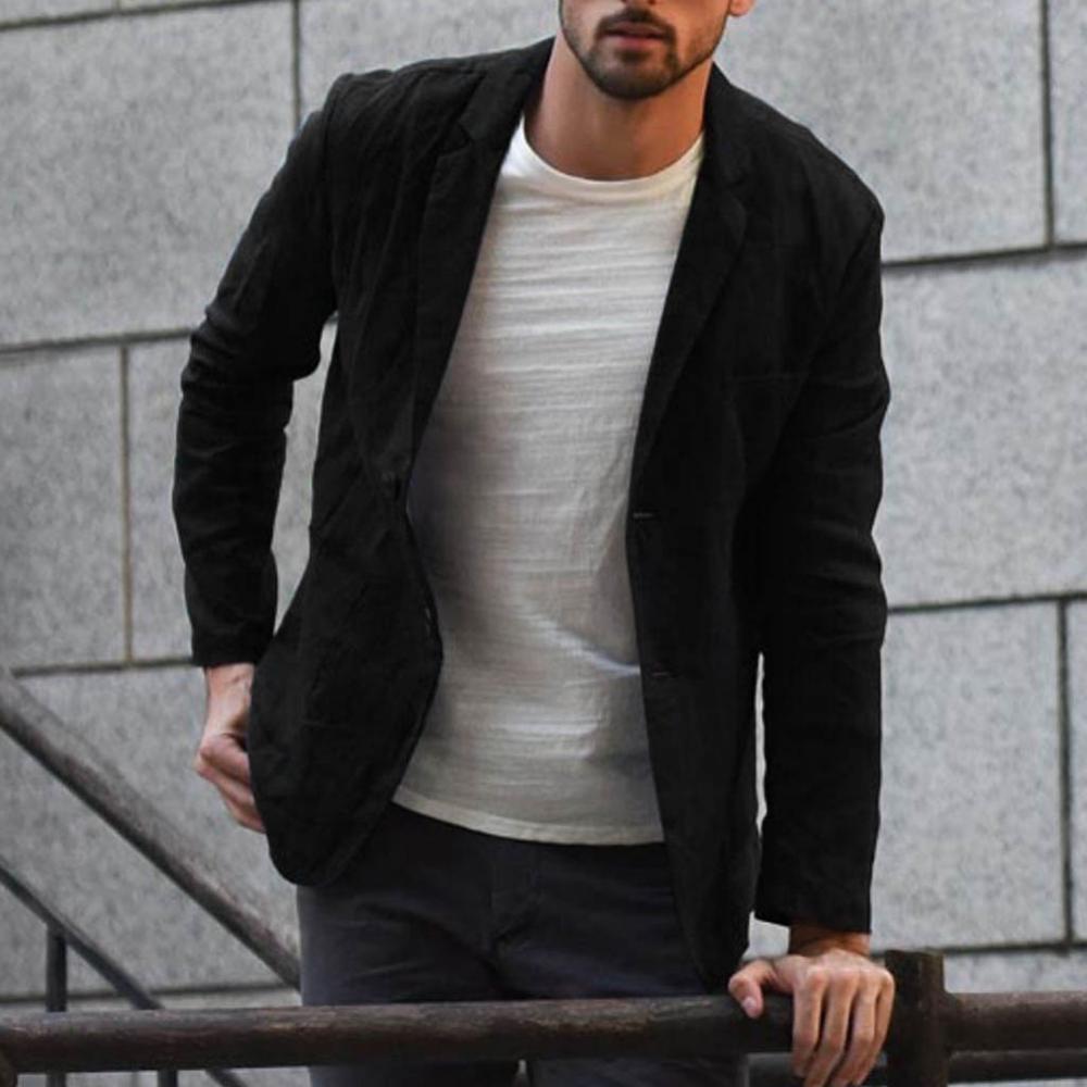 Men Autumn Solid Color Long Sleeve Pockets Cotton Linen Slim Blazer Coat Jacket