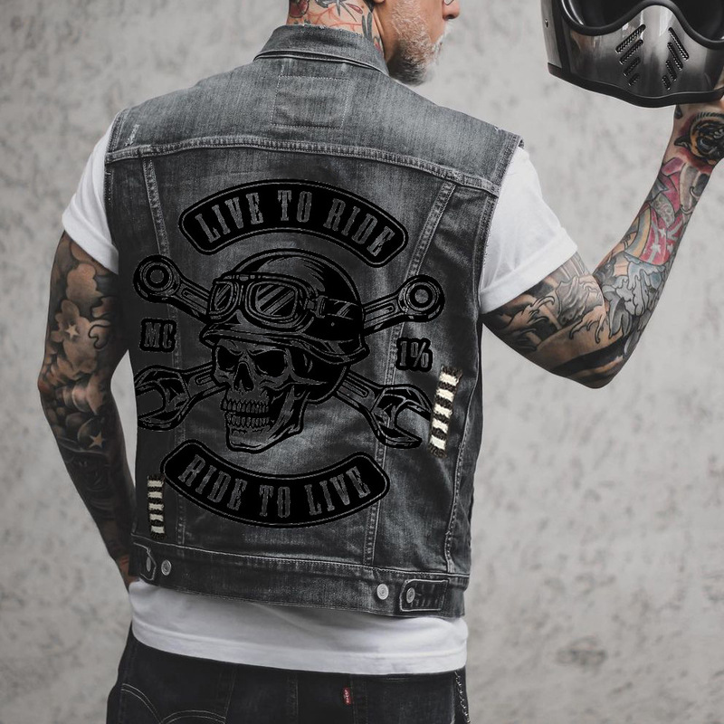 Mens Denim Vest Skull Print Motorcycle Biker Punk Hip Hop Top Waistcoat Hole Ripped Cotton Sleevless Jean Jacket Men Vests