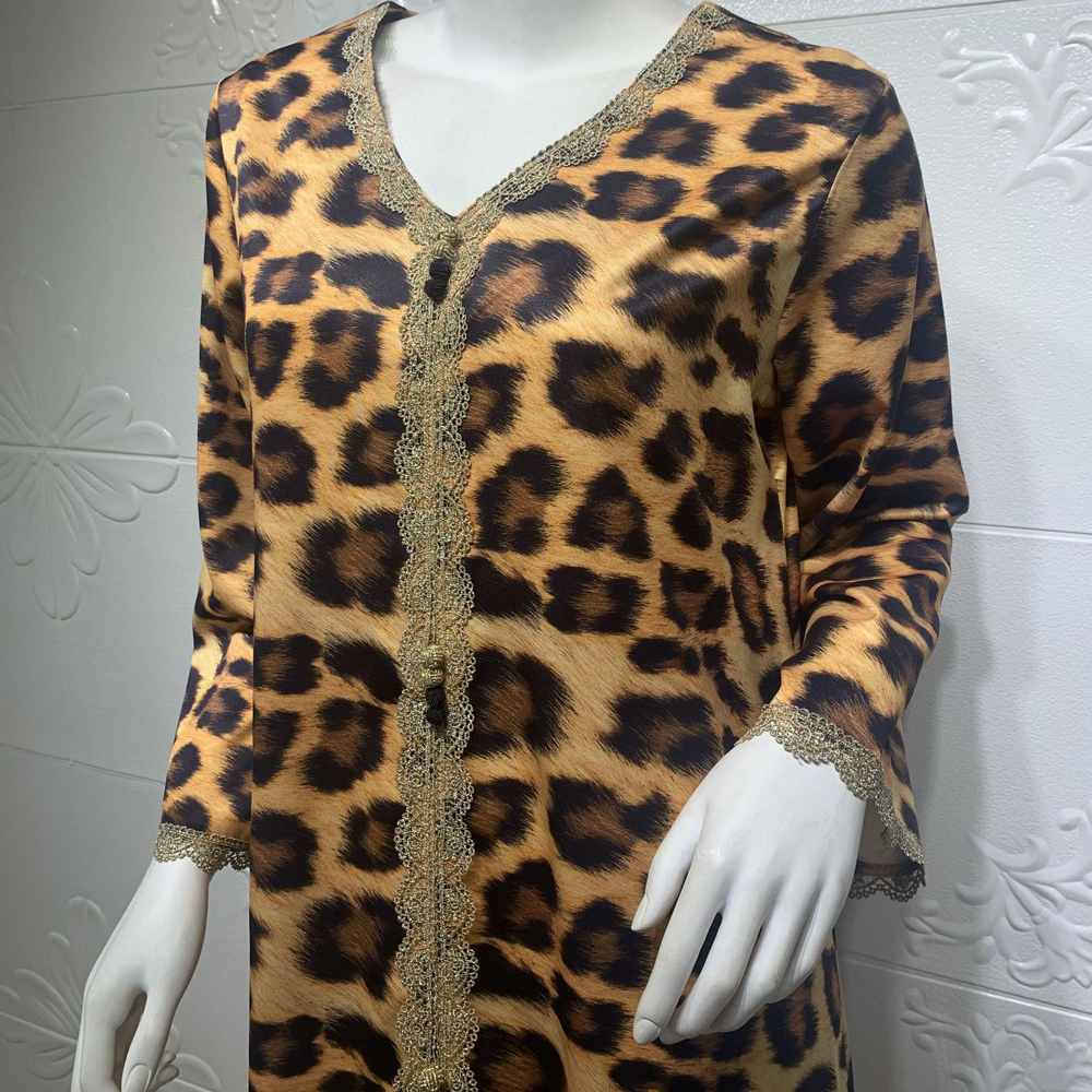 Muslim Ladies Leopard Robe Dress Middle East Dubai Arab Abaya Islamic Dress Tall Morocco Kaftan Turkish Long Skirt