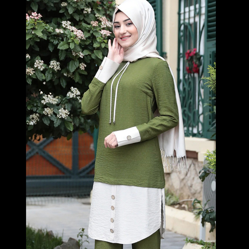 Muslim Women Long Tops Islamic Sets Women Muslim Pants Abaya Dubai Patch Designs Ramadan Prayer Clothes 2 Piece Set