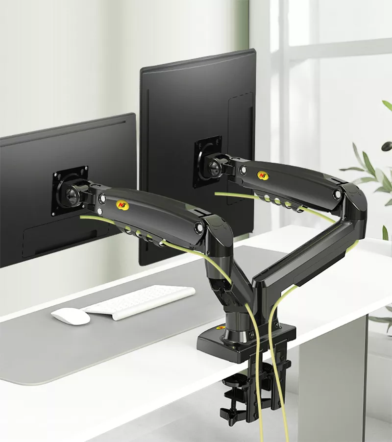 F160N desktop dual screens flexi-monitor mount is built-in durable Gas-strut cylinder to enable to move your screens any directions and height at your wish. Allow you to experiencing the best of ecological interface design for the best  viewing position. F160N dual screens desktop lcd mount designed specially for people whom needs multi-screens and multi-tasks to enhance their productivitive in office works, finance, design and IT.  Added that gravity spring pivot joint design offered effortless titling position to eliminate gray viewing angle.