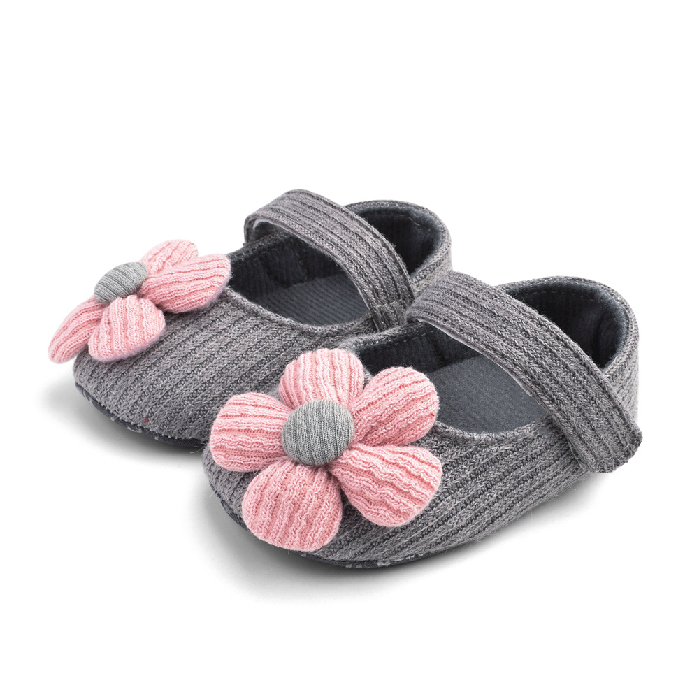 Newborn baby lovely flower baby shoes knitted first Walker spring and autumn soft bottom anti slip baby girl shoes