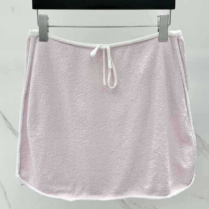 2022 New Pink Tube Top Knitted Set Sexy Lace-up Design Waist Sleeveless Tee High Waist Short Skirt Fashion Casual Sets For Women.A0738