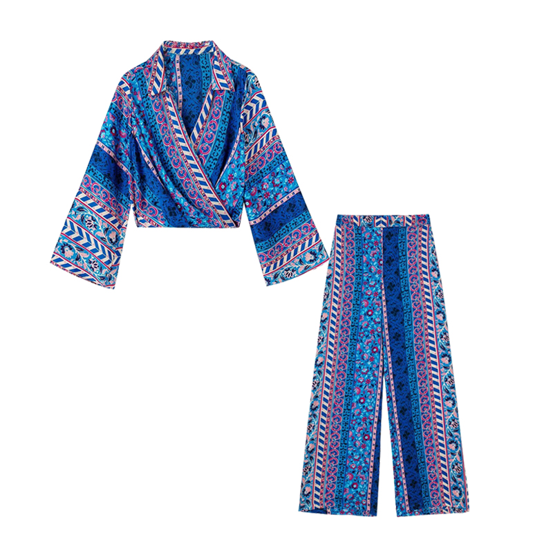 Print Elegant Women's Suit Elastic Waist Straight 2 Piece set Suit Casual Chic Youth Vacation Suit