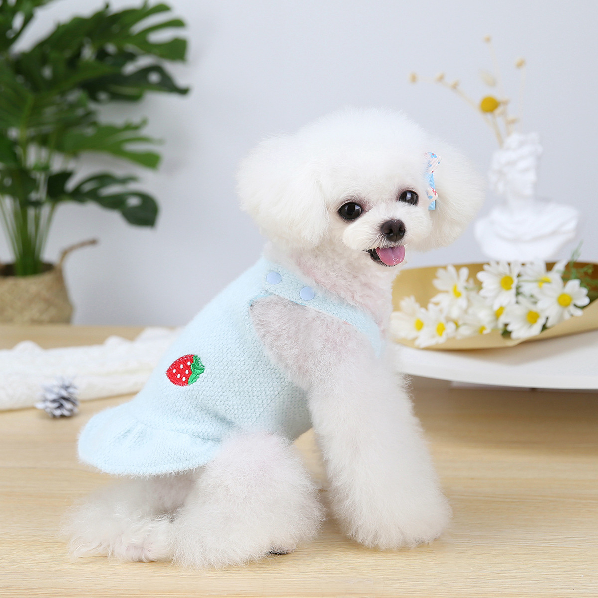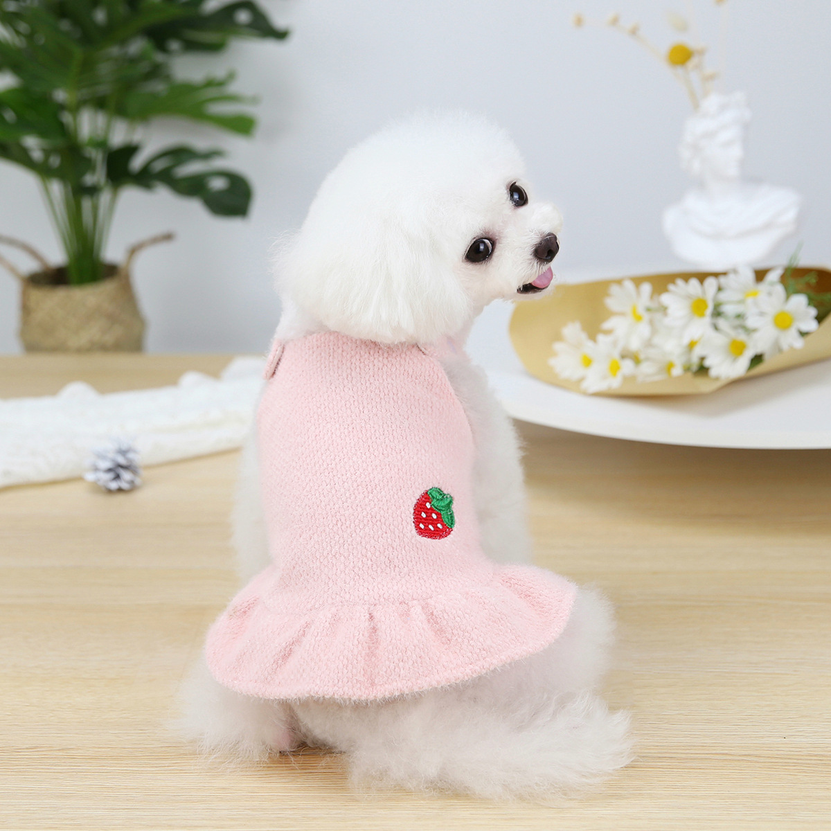 Soft Pet Dog Clothes for Small Dogs Princess Skirt Suspenders Dress For Chihuahua French Bulldog Warm Knitted Dog Sweater