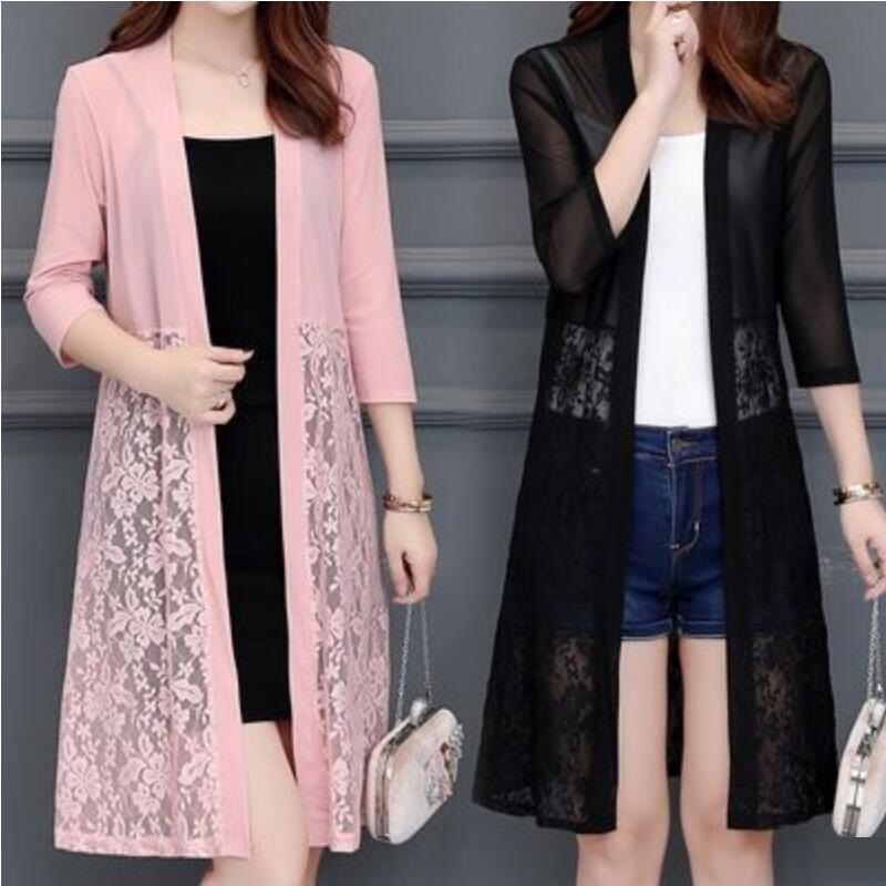 Spring Summer Women Long Cardigan Female Cardigans Women Lace Coat Jacket Ladies Shawl Outerwear
