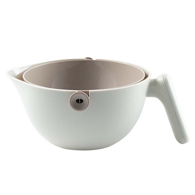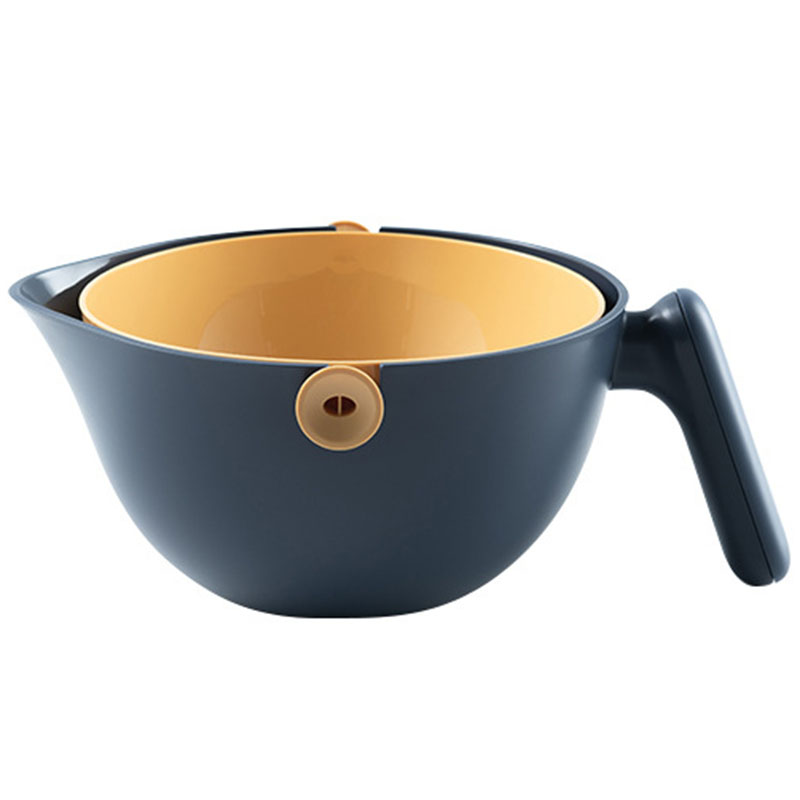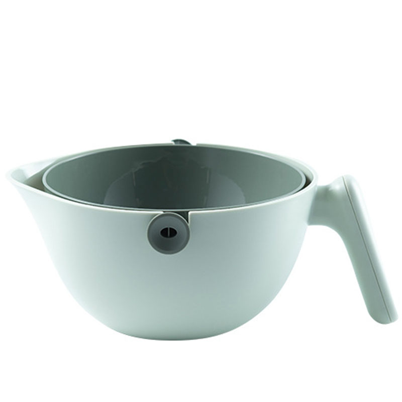 2.After the fruits and vegetables are cleaned by the rotating and draining method, just tilt the handle and gently rotate 90° to quickly drain.