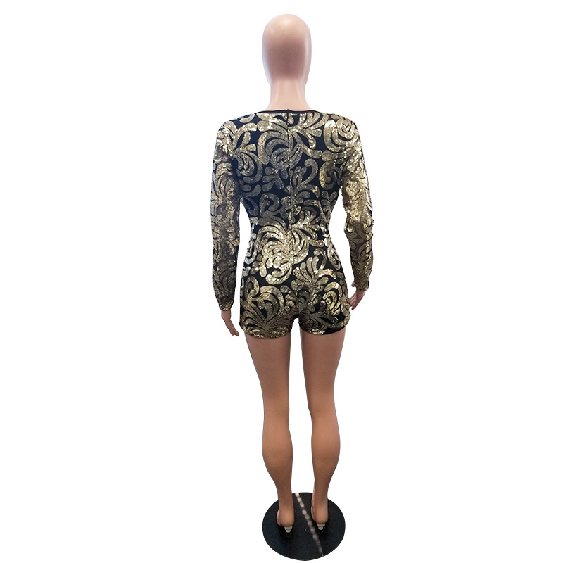 New 2019 European and American women's sexy deep V-neck printed Sequin Jumpsuit Size Chart :1 inch=2.54cm