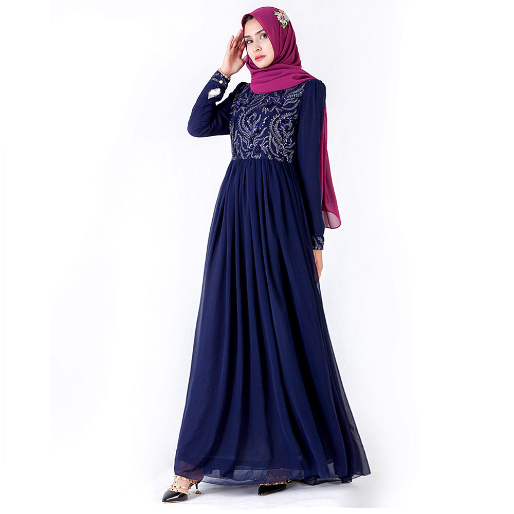Y023 Women's Long Dress Abaya Modest Robe Ramadan Muslim Sequin 3D Embroidery Islam Chiffon Clothes Lace Without Hijab Scarf