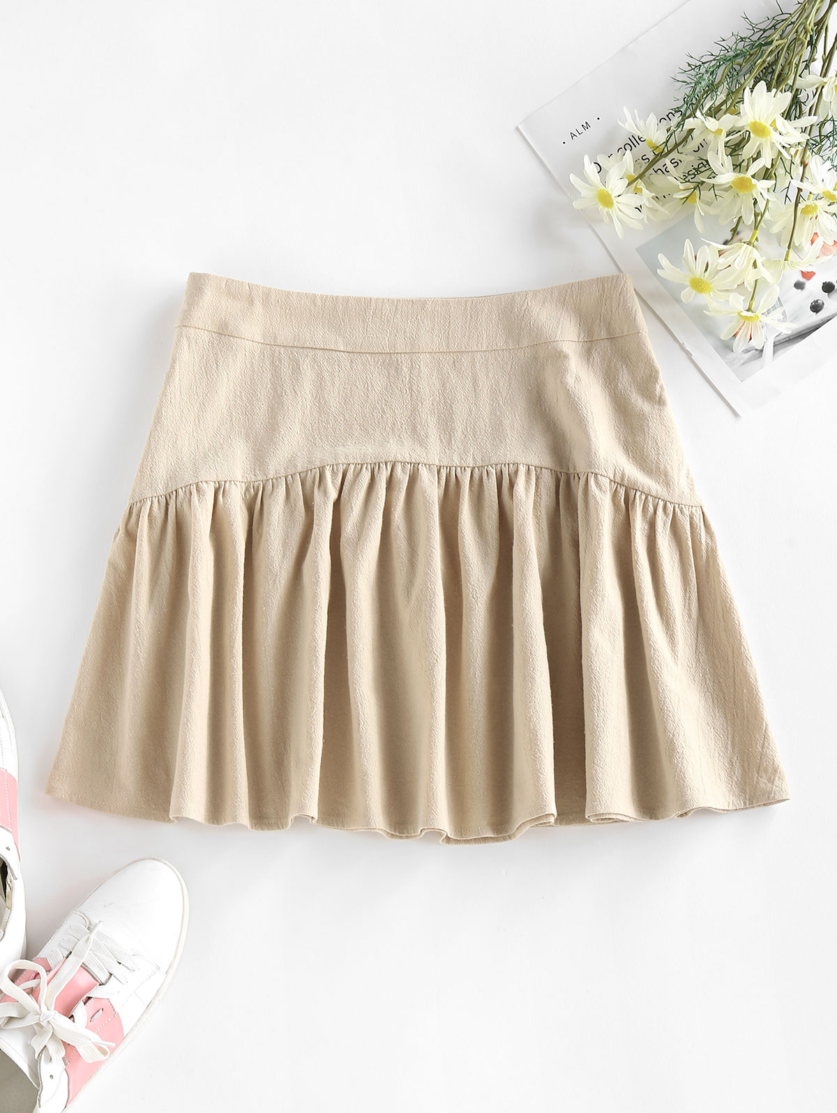 Lively wide pleats cover this cozy cotton mini skirt with a side concealed zipper that you can easily team up with your favorite crop blouse for a sunny-day stroll.