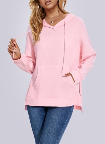 Womens Hoodies Pullover Waffle Knit Tops