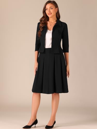 Allegra K Business Skirt Suit Sets for Women's 2 Piece Outfits Office 3/4 Sleeve Blazer Jacket Pleated Skirts
