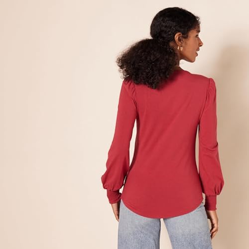 Amazon Essentials Women's Long-Sleeve Crewneck Smocked Cuff T-Shirt