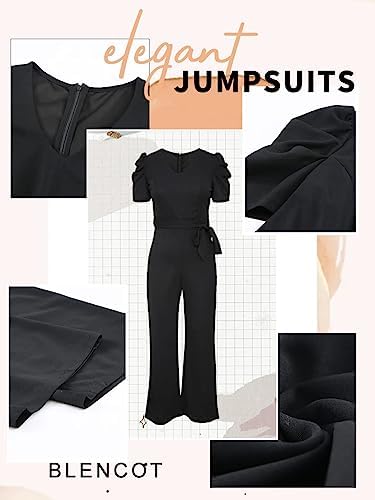 BLENCOT Jumpsuit for Women Short Sleeve Casual V Neck Wide Leg Formal Rompers