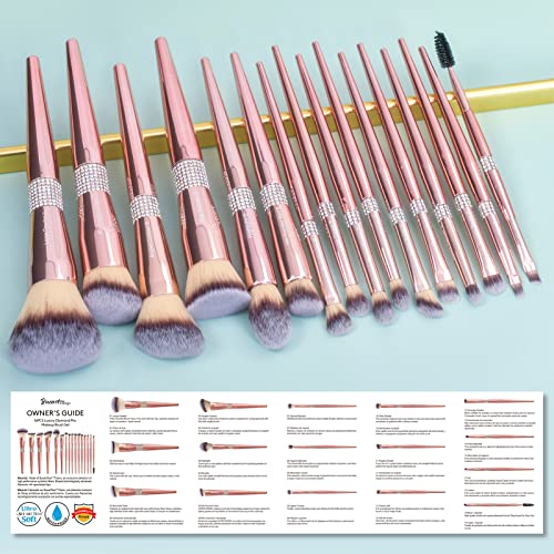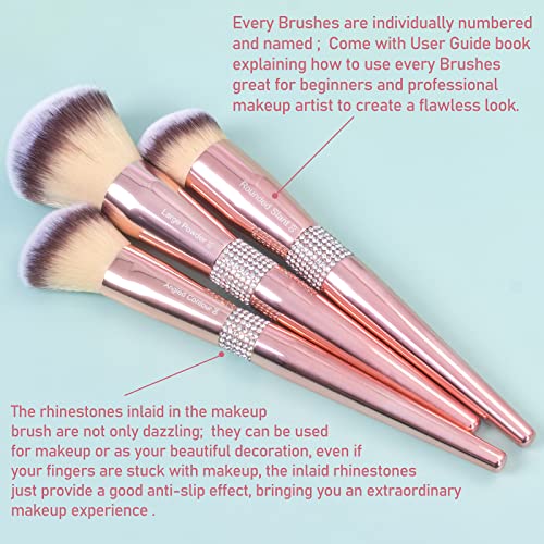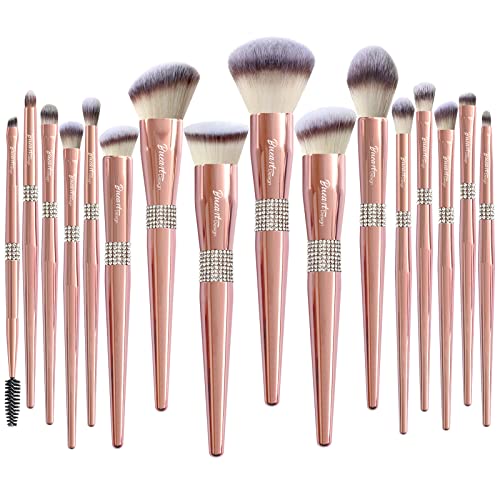 Bueart Design 16Pcs ULTRA SOFT Labeled Makeup Brushes Sets -with Foundations Powder Blush Concealer Blending Eyeshadow Contour Brush sets (Rose Gold)
