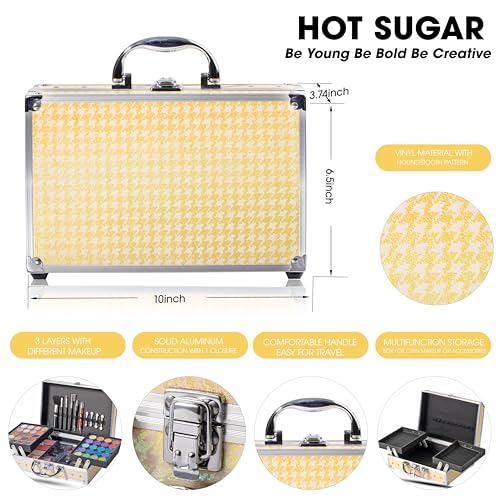 Hot Sugar Makeup Kit for Girls 10-12, Girls Makeup Set Ages 8-12, 14-16 With Aluminum Cosmetic Box (YELLOW HOUNDSTOOTH)