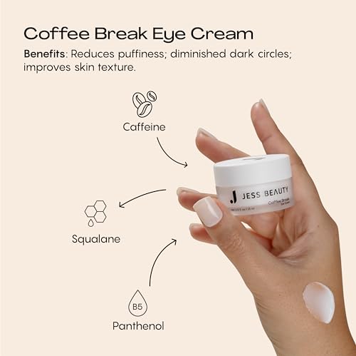 JESS BEAUTY | Coffee Break Eye Cream with 1% Caffeine, Squalane and Panthenol I Beauty and Self Care - Korean Beauty Eye Contour 0.5 fl. oz