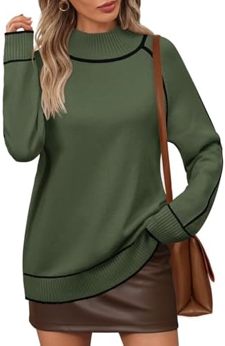 MEROKEETY Women's Mock Neck Pullover Sweater Long Sleeve Color Block Chunky Knit 2024 Trendy Winter Clothes