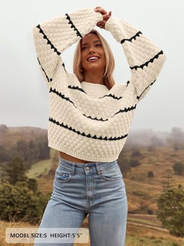 As the temperatures start to drop, cozy up in style with the MEROKEETY Women's Striped Long Sleeve Pullover Sweater. Made from breathable fabric, this oversized sweater provides a comfortable fit that feels great against your skin during the fall and winter seasons. Featuring long lantern sleeves and a classic crew neck, this sweater is designed for both comfort and fashion. The chunky knit texture gives it a warm and inviting look, while the striped color block design adds a trendy and playful element to your outfit. The unique diamond texture design further enhances the sweater's elegance and charm. Whether you're heading to the office, a party, a casual outing, or a date, this sweater is a versatile piece that can be dressed up or down to suit your needs. Pair it with jeans and boots for a laid-back look, or dress it up with a skirt and heels for a more sophisticated ensemble. Stay cozy and chic this fall and winter with this oversized sweater. Its baggy and loose fit offers a relaxed and stylish vibe that is suitable for any setting. Whether you're running errands, meeting friends, or just lounging at home, this sweater is a versatile and fashionable choice for your wardrobe. Upgrade your winter wardrobe with this classic and timeless piece. With its cozy and warm feel, trendy design, and versatile styling options, this sweater is suitable for the upcoming seasons. Choose from a range of colors and sizes to find the suitable fit for your style and personality. Stay on-trend and comfortable with this chic and stylish pullover sweater.