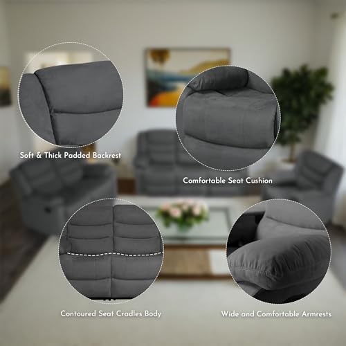 Our recliner sofa set, the perfect combination of style and comfort for your living room. This stunning manual recliner sofa set is designed to add a modern touch of elegance to your space.