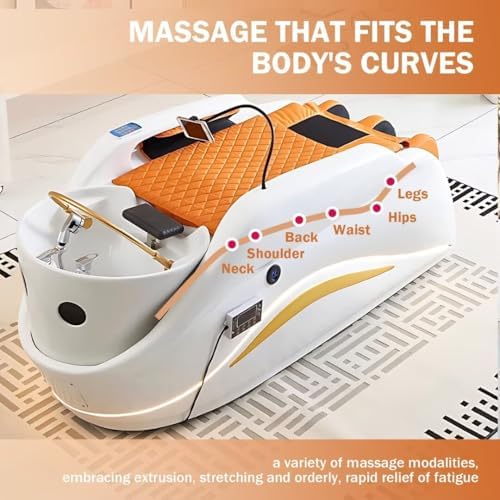 Salon Shampoo Bed-Massage Table with Unique Curved Modern Design, Head Spa Equipment& Beauty Bed Includes Water Cycle, Fumigation, Water Heater, USB Socket(76.77IN