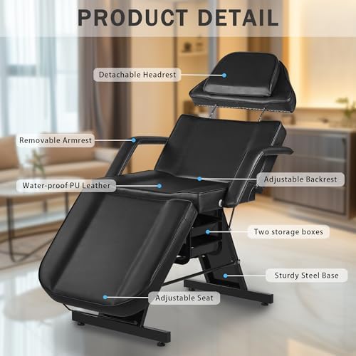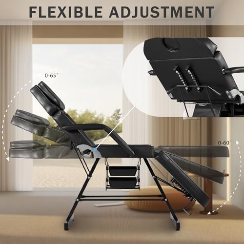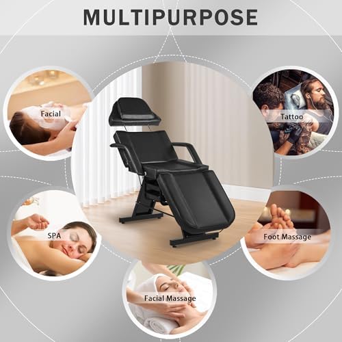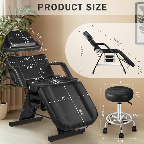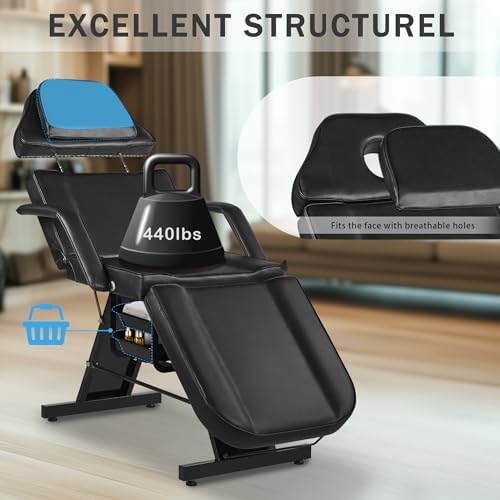 Tattoo Chair for Client ,Tattoo Bed with Storage Baskets, Dangvivi Hydraulic Facial Chair Esthetician Bed, 360 Swivel Adjustable Lash Bed for Eyelash Extensions