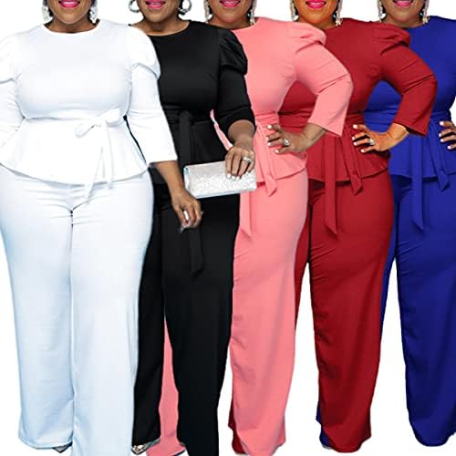 Plus Size 2 Piece Outfits Sets for Women Peplum Waist Flounce Tops and Wide Leg Pants Sets Wear to Work Office OL Outfits Suits Sets