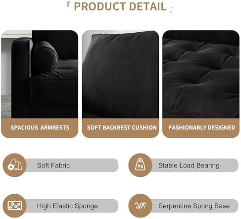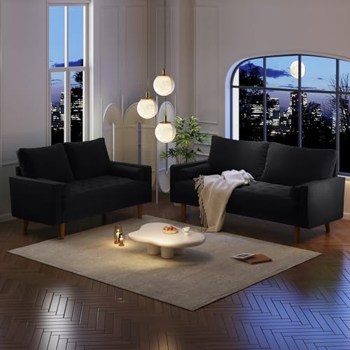 Velvet Furniture for Small Spaces, Mid-Century Modern Loveseats for Living Room, Love Seat Couch Sofas, 58 & 70 Inches, Black