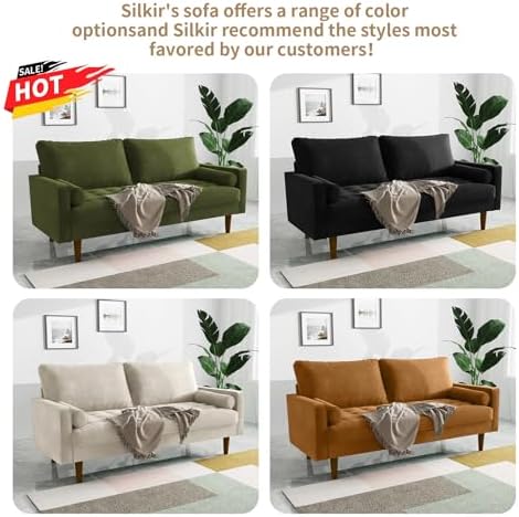 SILKIR Sofas for You---Artistic Elegance: Its premium velvet, sleek contours, and exquisite details create a visual centerpiece.---Long-lasting Durability: Engineered with premium materials and robust construction, our sofa guarantees enduring performance and unwavering reliability.Our factory works with designers of extraordinary versatility will provide personalized products which enables your home to fit your lifestyle, highlights the comfort and quality.SILKIR products will gradually fill your entire home space not only the soft, comfortable mattresses and pillows but also providing you with stylish and easy to assemble sofas and chairs.NOTE1. Please verify if the product dimensions meet your space requirements.2. Due to variations in displays or lighting, slight color discrepancies may occur.