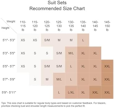 Partvece Suit Sets Recommened Size Chart